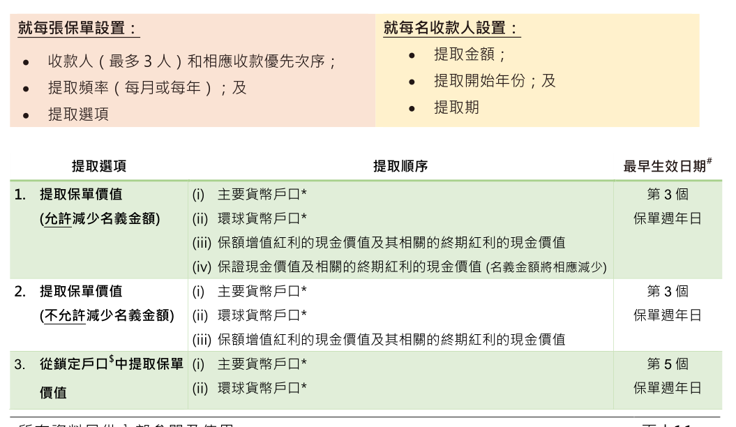 保单持有人可因应收款人财务需要,为各收款人设定合适提取组合,