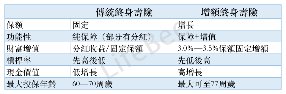 。由于年度保额逐年递增的特点,相较非递增型终身寿险,