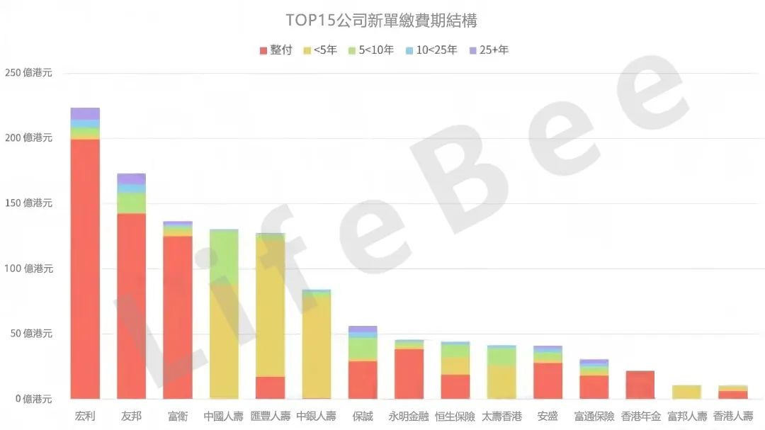年前三季度,香港各寿险公司的缴费期结构如下图。