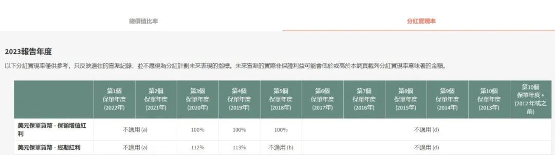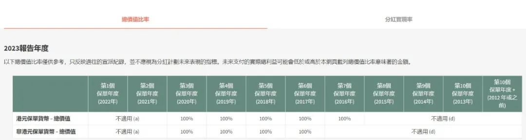 年发售,于2020年停售。2016年投保,2023年港元/非港元保单货币的总价值比率分别为99%/97%;