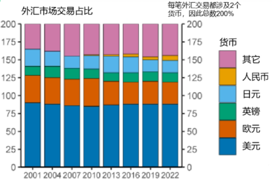 除了欧洲内部贸易以欧元为主,在亚太和其它地区贸易,美元占据绝对优势。