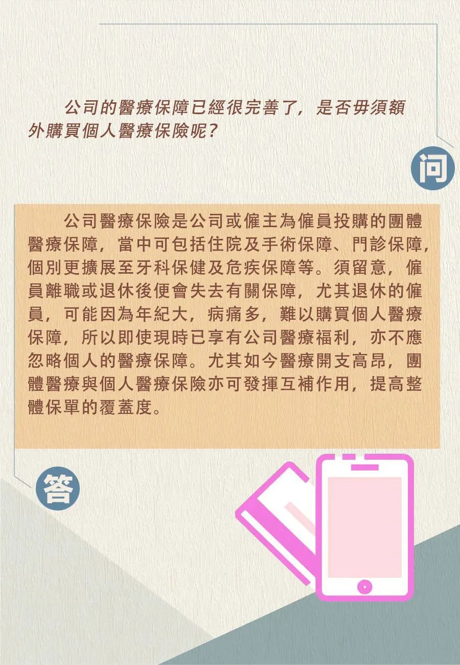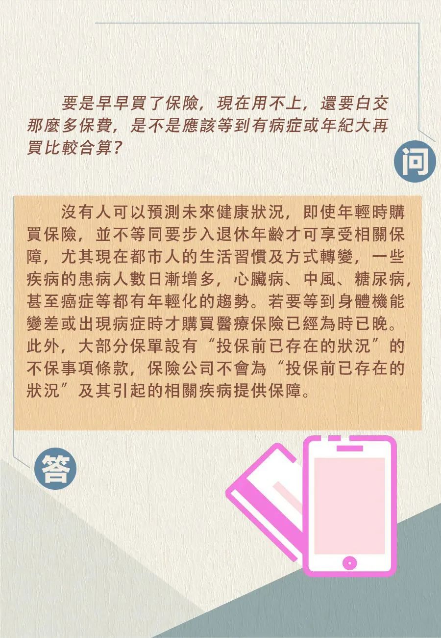 无论选择哪种医疗保障,投保人都应先了解个人需要及期望获得的医疗服务水平,例如以入住普通病房或半私家病房作为投保额及保费预算,然后按个人的经济负担能力,选择一份合适的医疗保障。那么,在投保前有哪些需要注意的事项呢?我们通过快问快答一起来了解下~