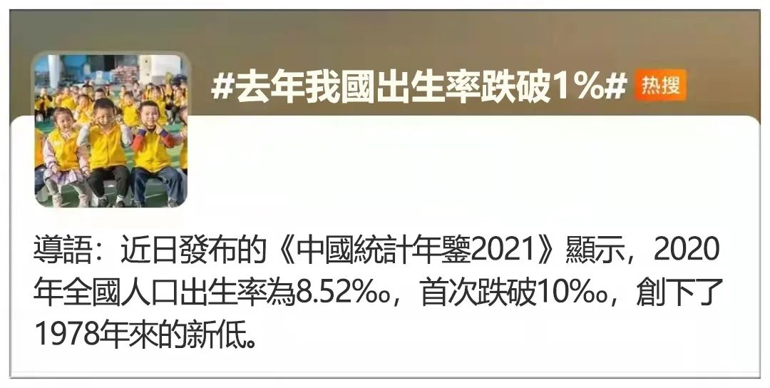 新闻一出来,网民瞬间“炸开了锅”,展开激烈地讨论。这已经不是第一次因为人口问题,登上微博热搜,早在5月份的第七次人口普查结果公布后,“出生率低”“老龄化严重”等字眼频频出现在人们视线中。曾经是人口大国的我们,也不得不面临着与其他国家一样的人口难题。