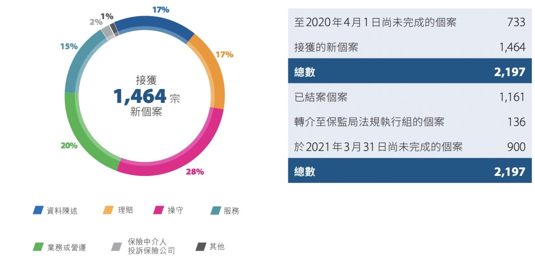 保监局针对各大保险公司的业务状况,对2020年香港保险业务各方面做了统计,
