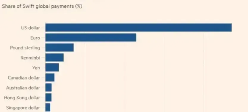 据国际支付数据显示,美元在全球交易中的占比高达46.64%,远超其他货币如欧元的23.02%和英镑的7.10%,确立了其在全球经济中的中心地位。