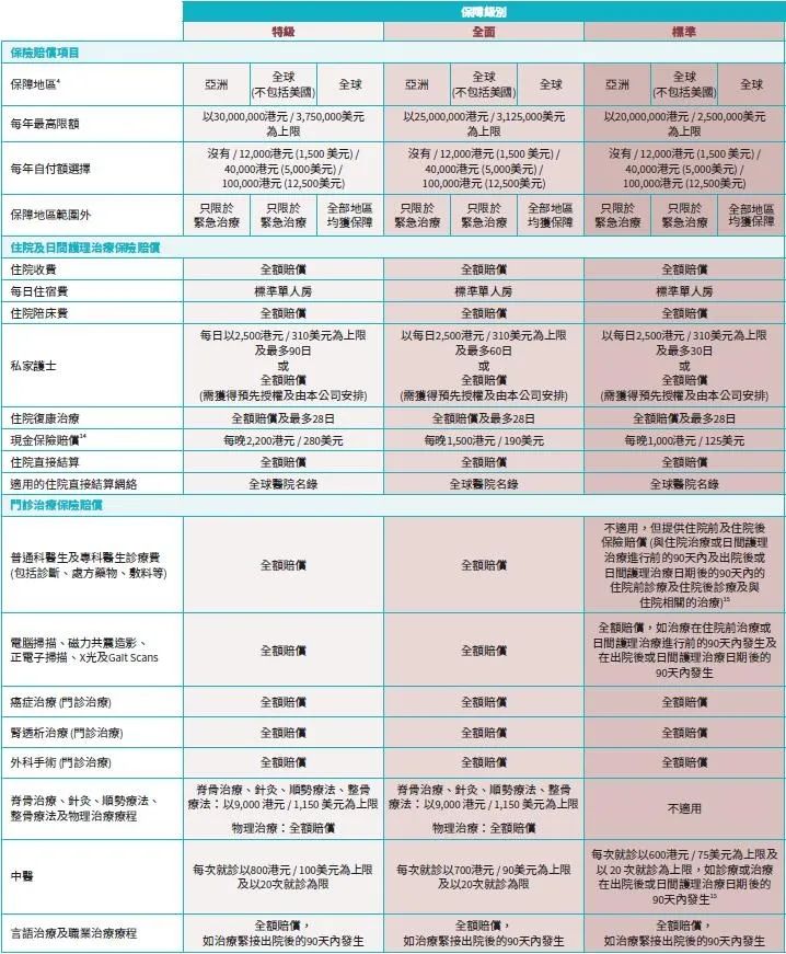有别于市面上大部分医疗保险计划,「寰宇特选 II」的特级及全面保障级别均为「前已存在的情况」及先天性的情况提供保障。